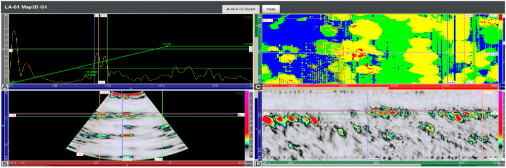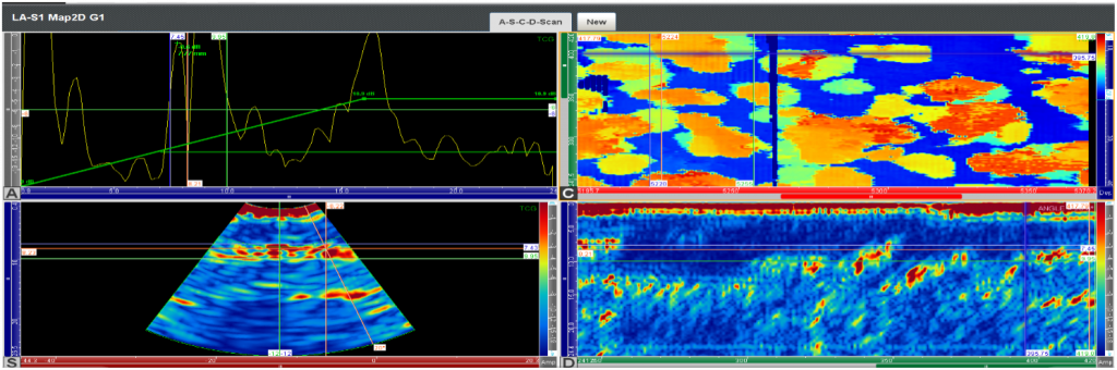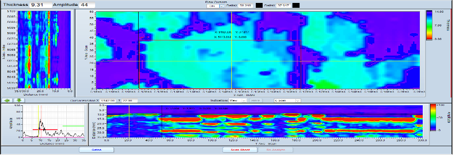 - UAUT-CM Corrosion Mapping: UAUT-CM utilizes ultrasonic phased array technology for exceptionally accurate measurement and detection of corrosion, erosion, and pitting. By employing multiple individually controlled ultrasonic element transducers, the system produces detailed, high-resolution images of material internal structures. This makes it a valuable tool for integrity assessment.