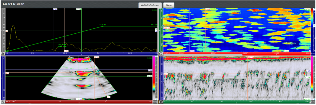 - UAUT-HIC Inspection: Arise Global utilises a combination of Triplex probe (Trilateral) with two 45-degree shear wave transducers and a dual 0-degree transducer in parallel with A-PAUT/TFM techniques, ensuring excellent performance in weld and Hydrogen Induced Cracking (HIC) inspections.
